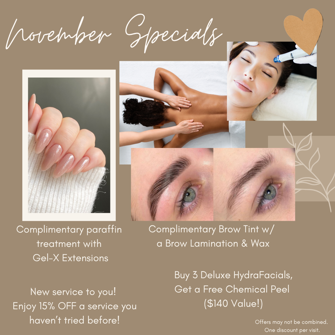 We also provide Facials, Lash lifts, Brow Laminations, Massage Therapy, Natural Nails and HydraFacials in Austin and Georgetown.