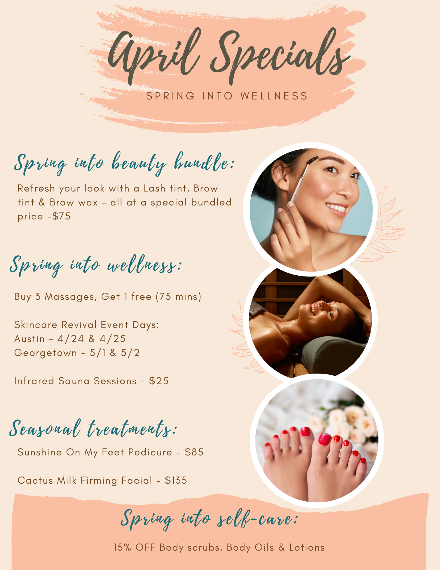 We also provide Facials, Lash lifts, Brow Laminations, Massage Therapy, Natural Nails, HydraFacials and Infrared Sauna in Austin, Georgetown & Liberty Hill.
